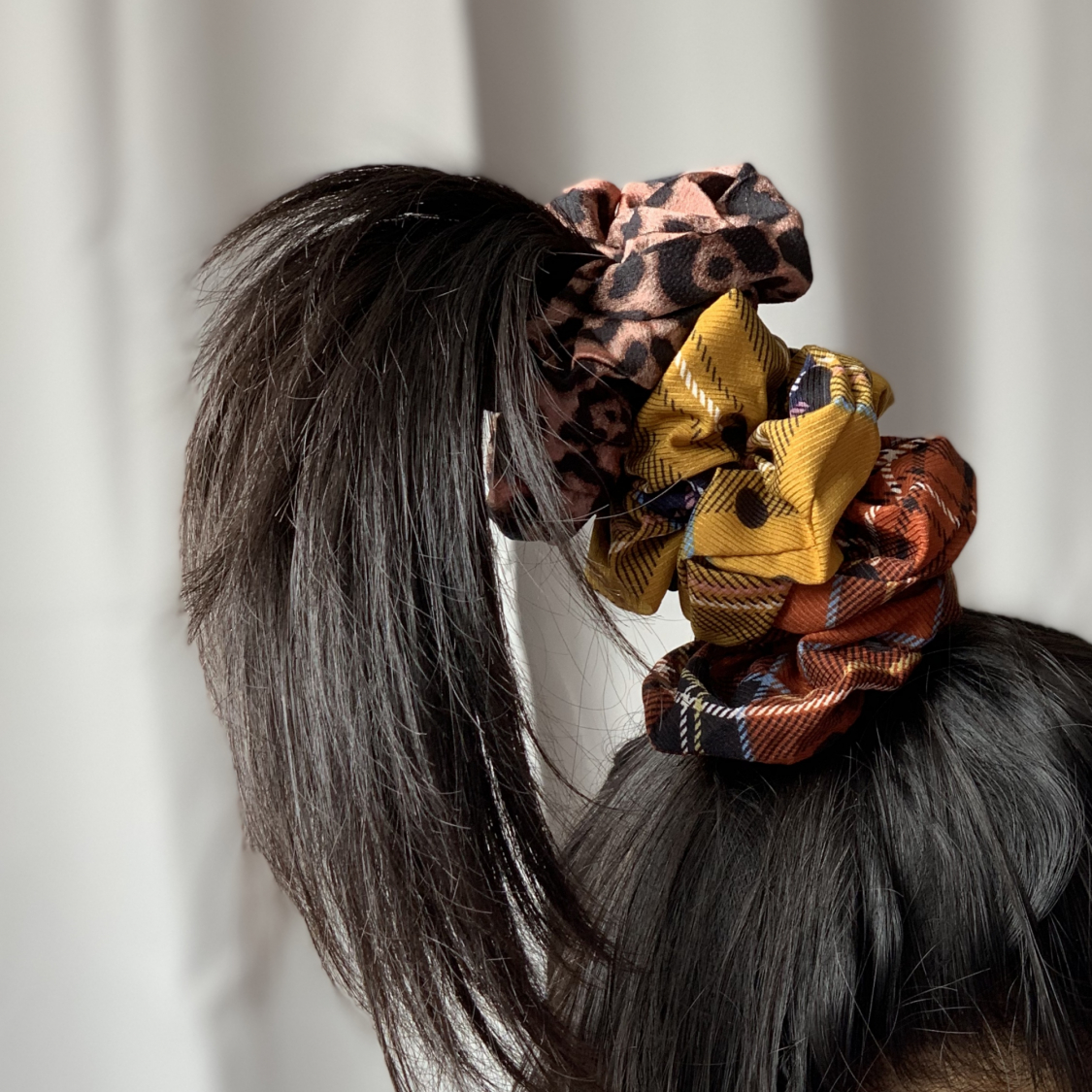 forskellen på MEGA og GIGA scrunchies hos LÉ MOSCH