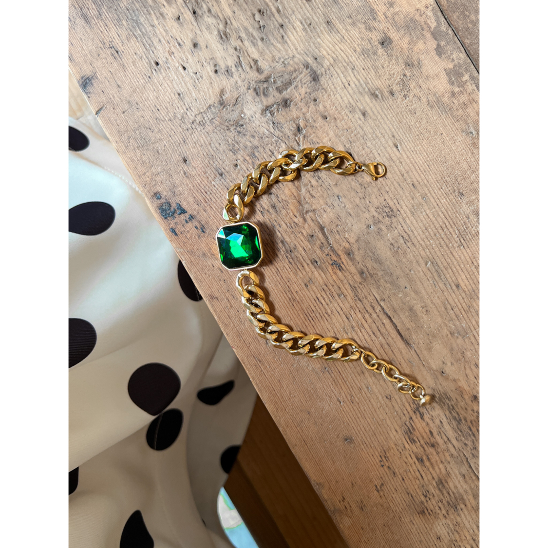 Forsiden / Smykker / Gabbi armbånd i forgyldt med grøn sten