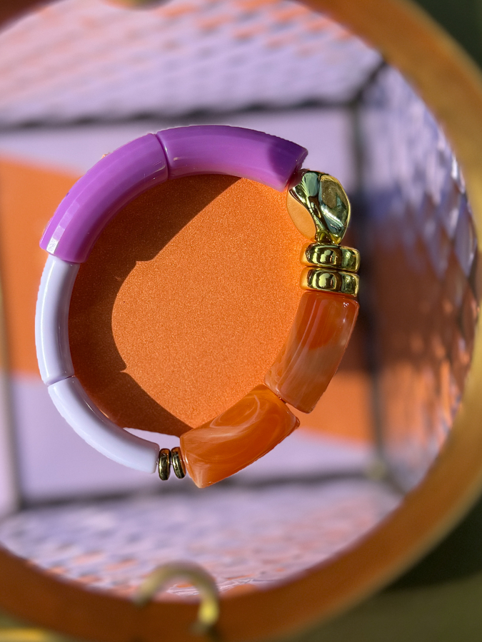 Maggie armbånd no 41 fra LÉ MOSCH, smukt boheme armbånd lavet i acetat tube perler