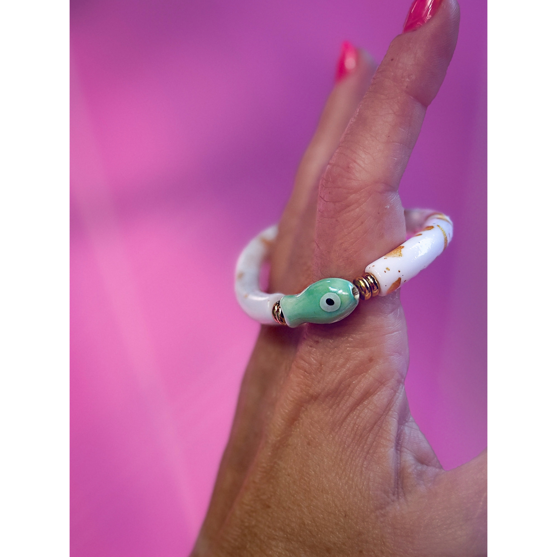 Maggie armbånd no 27 fra LÉ MOSCH, smukt boheme armbånd produceret af tube perler i acetat samt kunst perler.