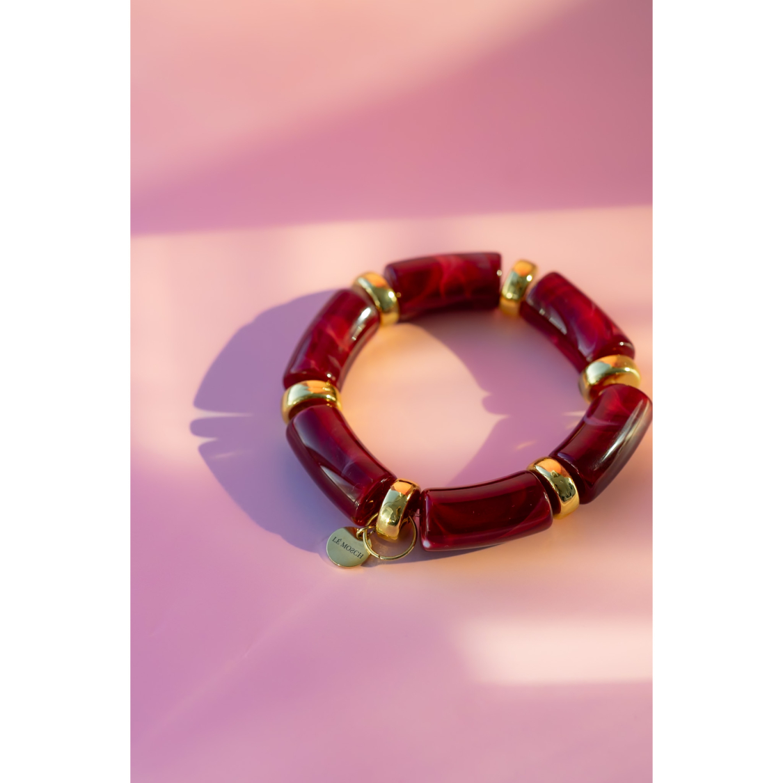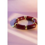 Millie armbånd i mørkerød fra LÉ MOSCH, chunky armbånd i vinrød og gylden, fyldige boheme armbånd i mange farver,