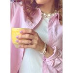 2 enkle perle-armbånd. Det ene med vores gyldne LÉ MOSCH tag.