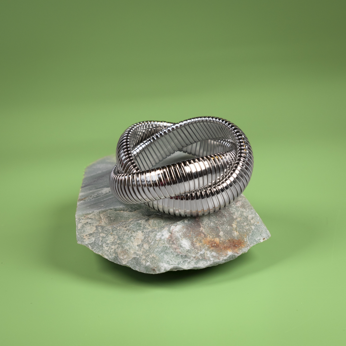 Super cool forsølvet statement armbånd. Armbåndet er elastisk og derfor nem antage af og på.
