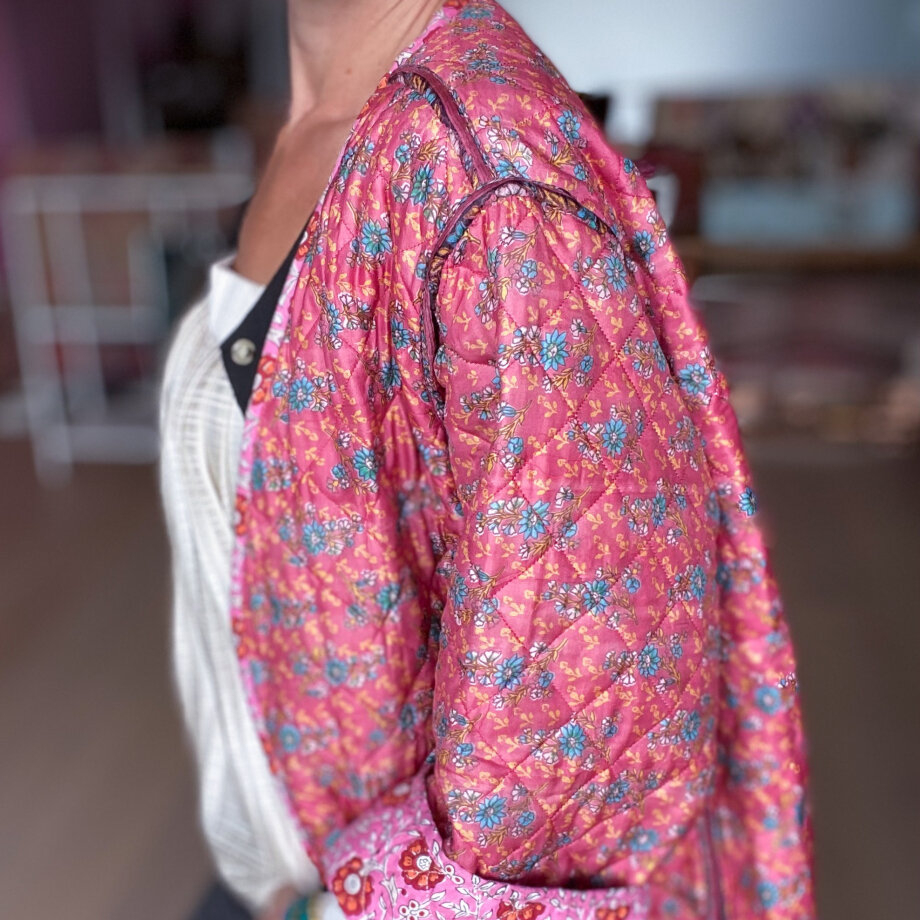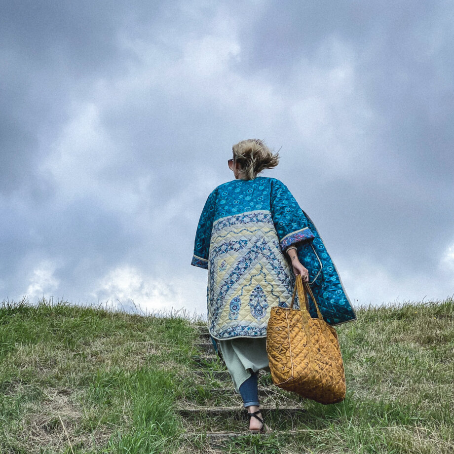 Jeg kom egentlig fra, at jeg skulle vise dig tre af mine efterårsfavoritter. Den første er en overgangsjakke. Den er perfekt til de kolde morgener. Den er vendbar med lommer på begge sider. Du kan lukke jakken med det tilhørende bælte.
