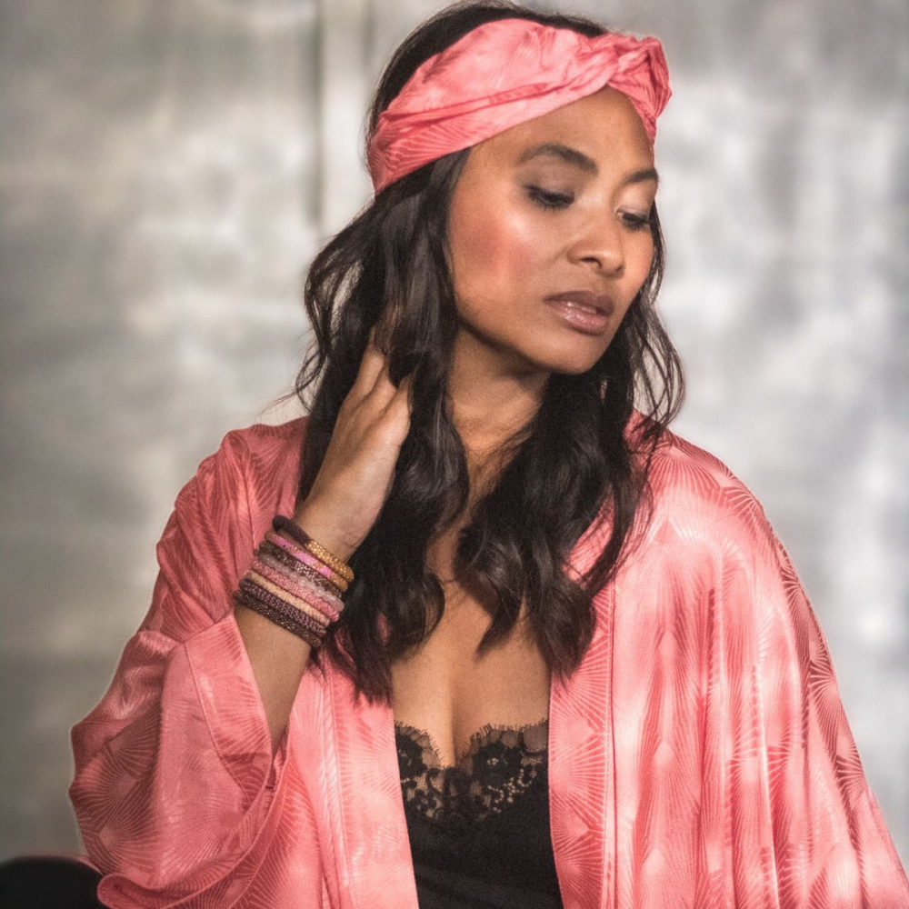 Mmbob skiller sig ud fra de andre kimonoer, da den er produceret i tung polyester. Det giver den det smukkeste fald. Den kan både bruges til hverdag eller som en eksklusiv morgenkåbe. Den kan igen lukkes med et tilførende bindebånd.