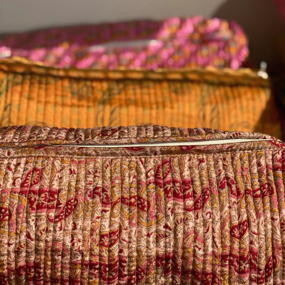 Vores punge er produceret i vintage sarier. En sari er et 5-6 meter langt stykke beklædning, som Inderne bruger.