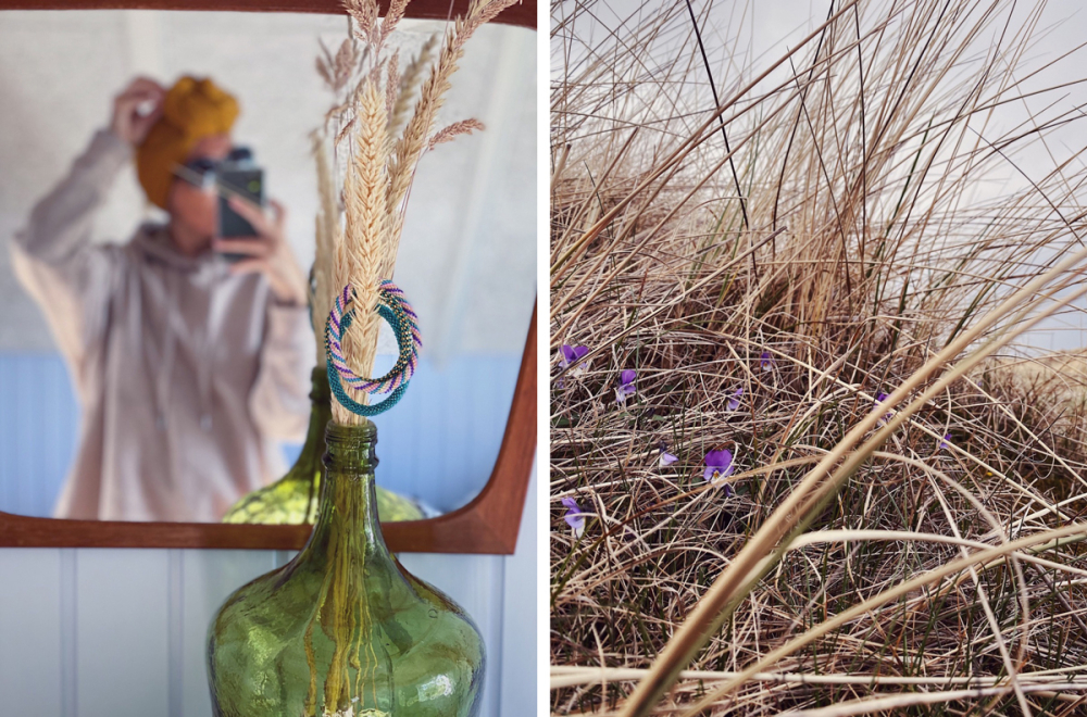 Jeg går dagligt ture. Ved vores sommerhus i Vejers er der den smukkeste natur. Den natur inspirerer mig til at designe de flotteste items.