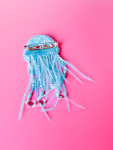 Lille Gople Broche i blå og hvid fra LÉ MOSCH, smuk og levende blå vandmand-broche, unik og dekorativ broche,
