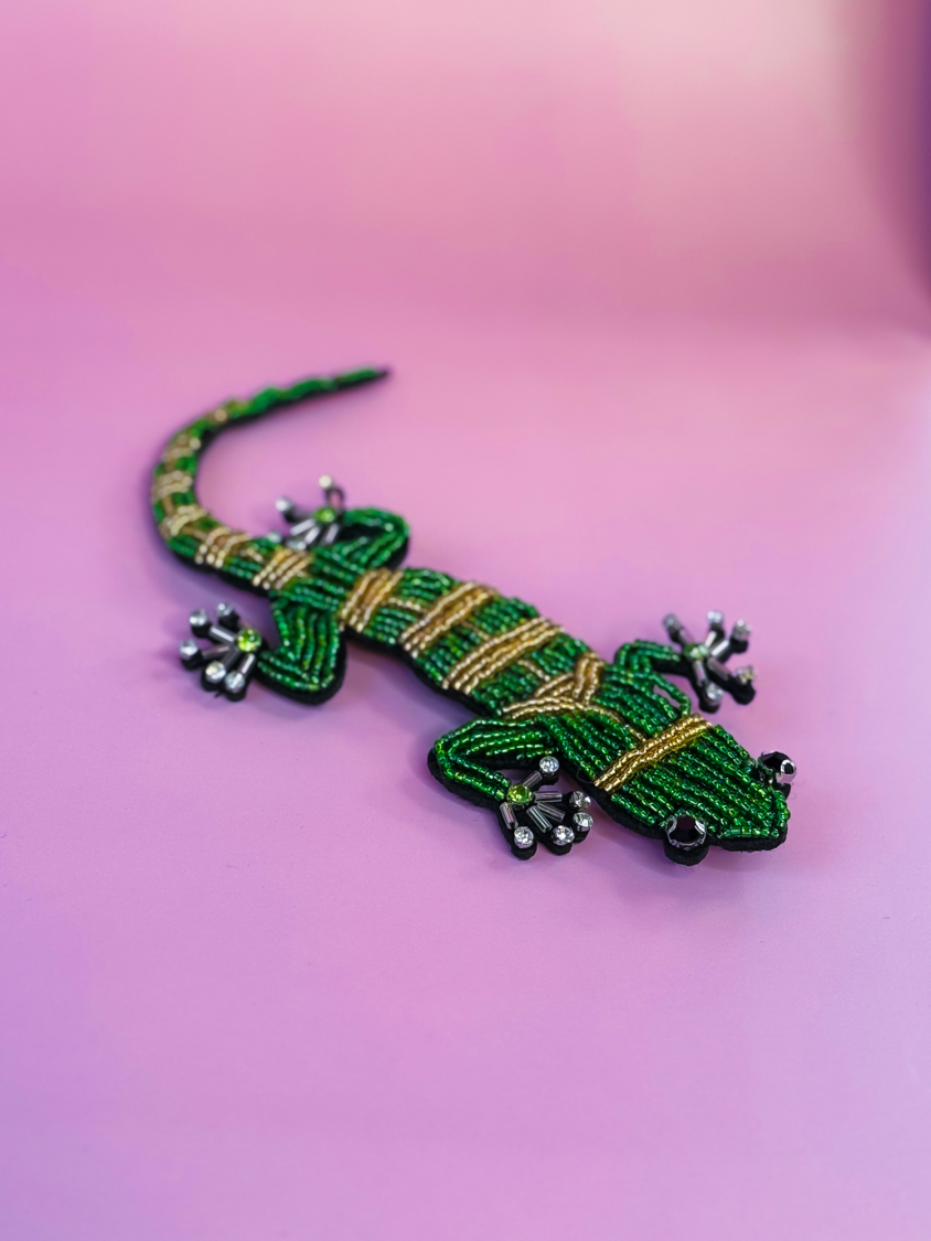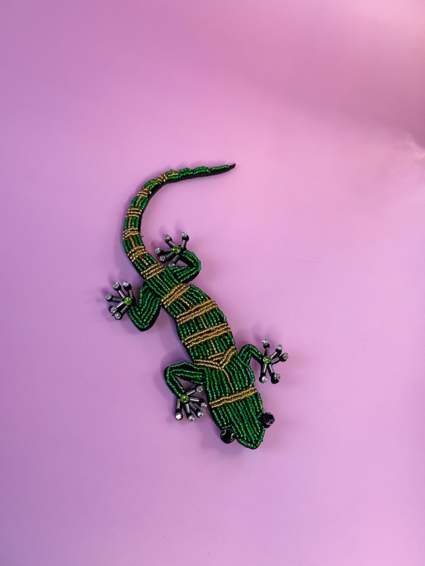 Broche med grønt firben