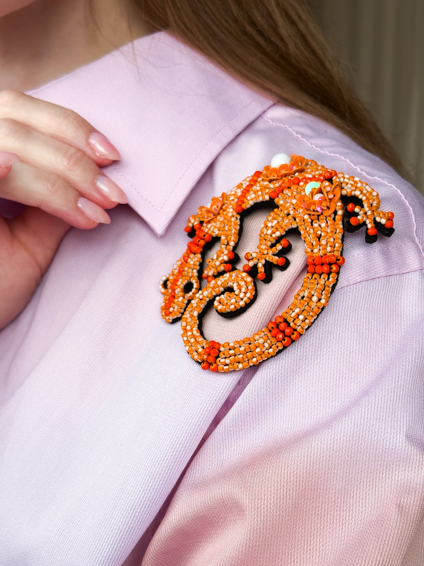 Broche med orange firben