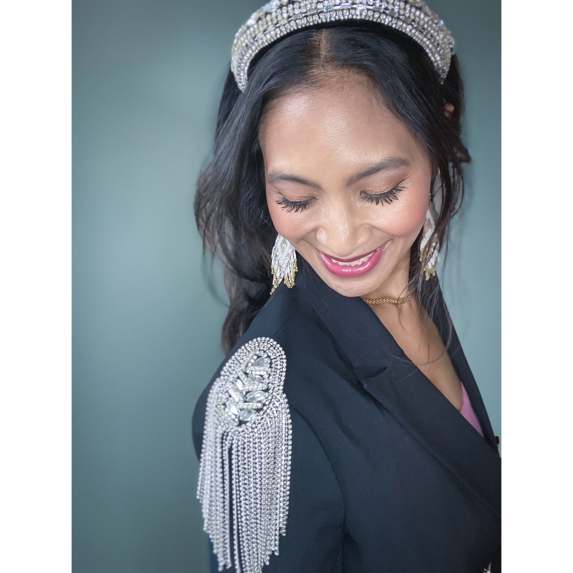 Broche med grøn kamæleon fra LÉ MOSCH, smuk og dekorativ stor broche med pailletter, perler og sten, feminin og sjov broche der forestiller en kamæleon,