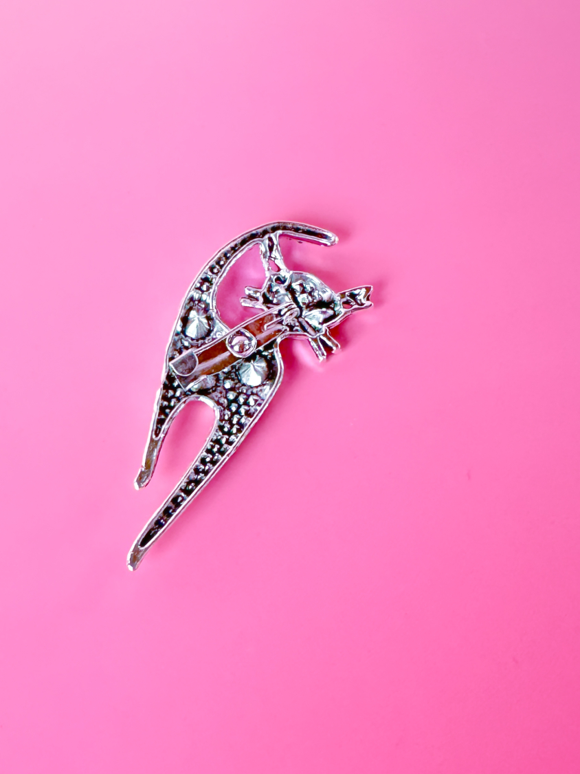Broche med kat fra LÉ MOSCH, dekorativ og sjov kattebroche, smuk detaljeret broche med kat,