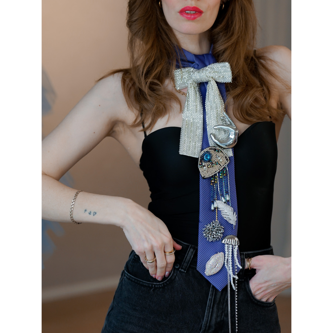 Sløjfe Broche fra LÉ MOSCH, smuk og dekorativ sløjfebroche med similisten, feminin broche der glitrer,