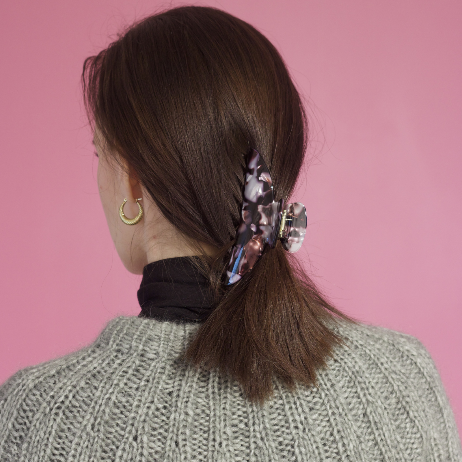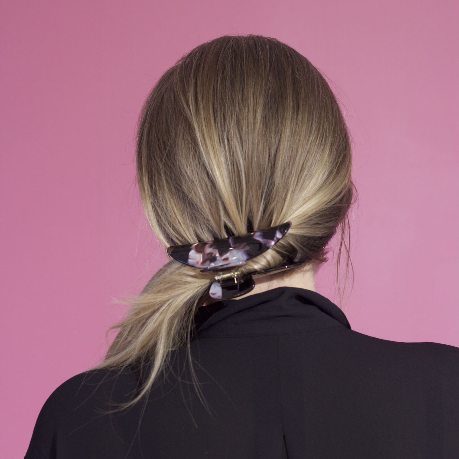 Brug Cloud hårklemme i lilla blur til at holde noget af håret oppe, eller vælg kun at sætte helt håret op omme i nakken. Hårklemmerne kan bruges til både festlige lejligheder men også til hverdag når du bare skal have håret væk fra hovedet.