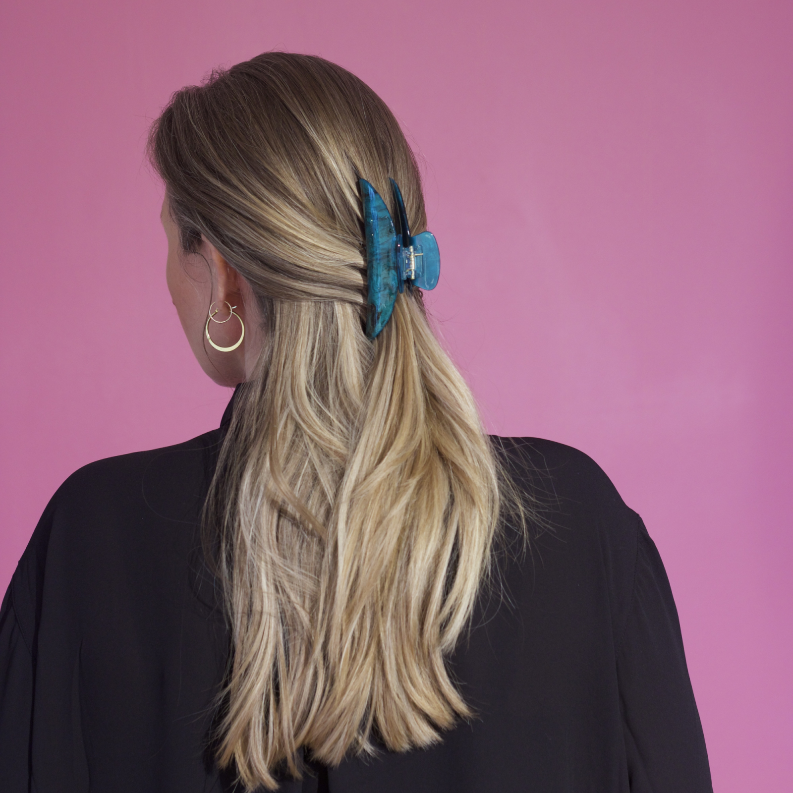 Brug Cloud hårklemme i Marmor Grøn til at holde noget af håret oppe, eller vælg kun at sætte helt håret op omme i nakken. Hårklemmerne kan bruges til både festlige lejligheder men også til hverdag når du bare skal have håret væk fra hovedet.