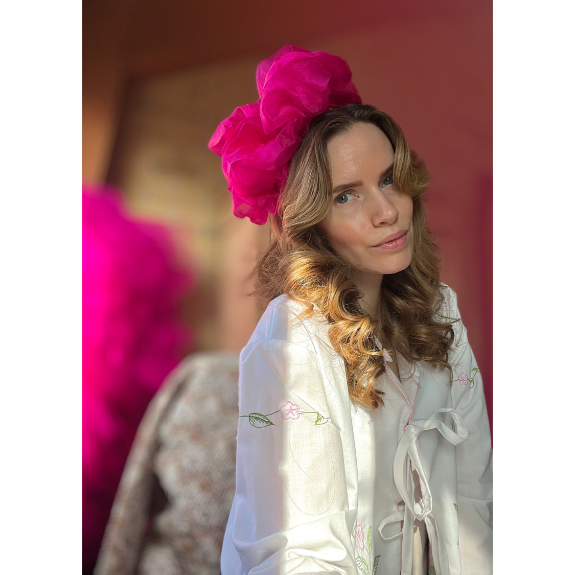 Forsiden / Håraccessories / Hårbøjler / Stor asymmetrisk Midsommer organza hårbøjle i Pink