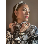 Mosaik hårbøjle med similisten og perler i Gylden