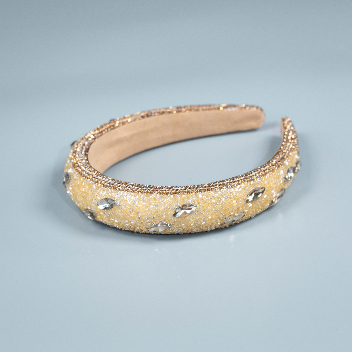 Forsiden / Håraccessories / Hårbøjler / Mosaik hårbøjle med similisten og perler i Gylden
