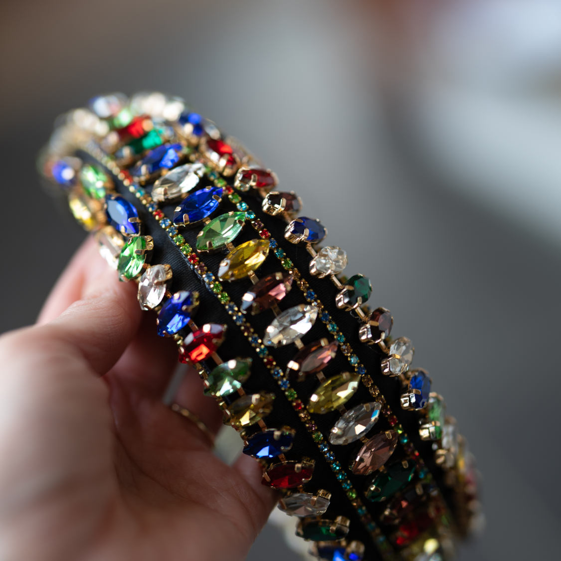 Smuk og festlig hårbøjle med masser af sten. BEMÆRK: der er ingen reklamationsret på similisten.