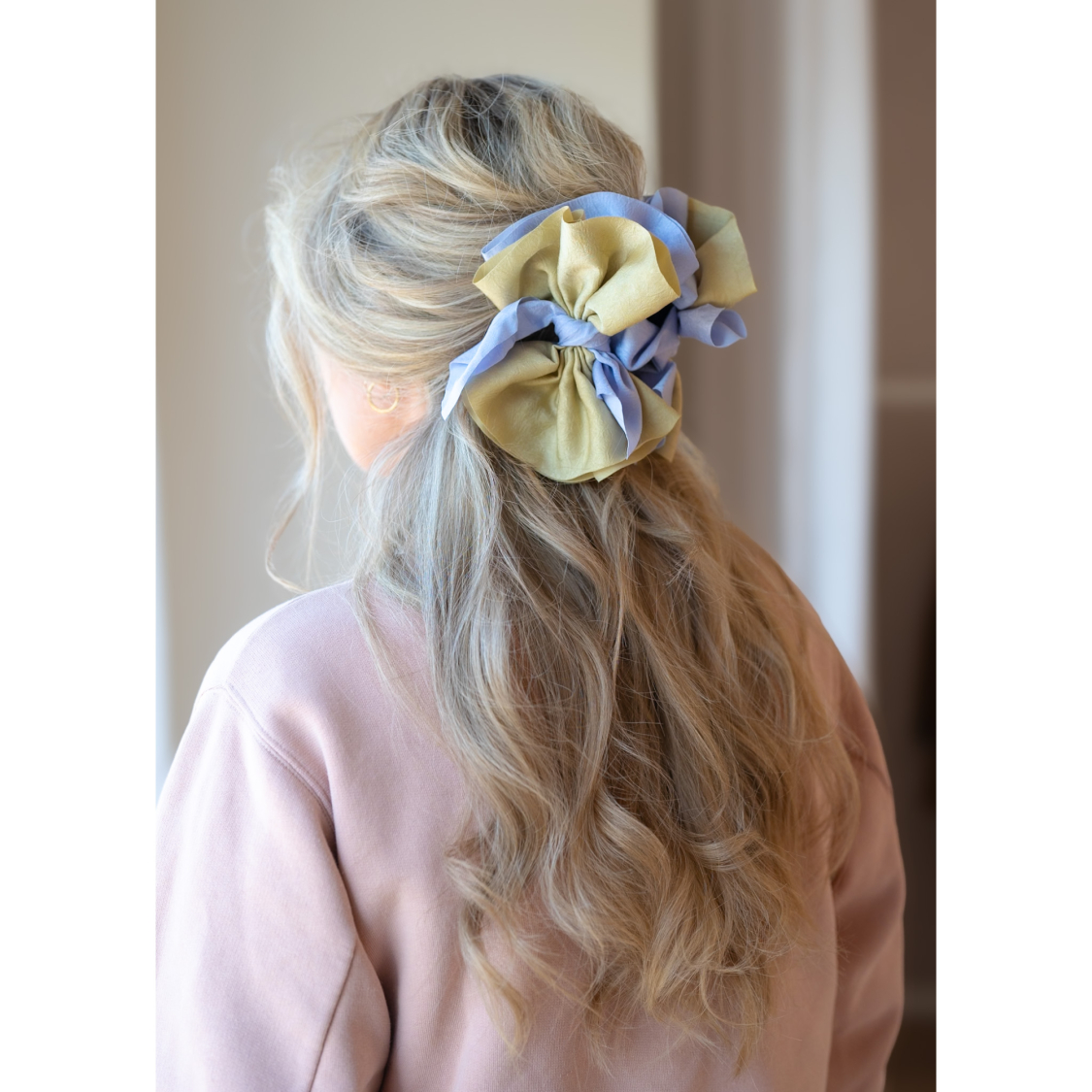 Elka hårklemme i blå og sage fra LÉ MOSCH, fyldig hårklemme, hårklemme med stof, hårklemme med sløjfer,