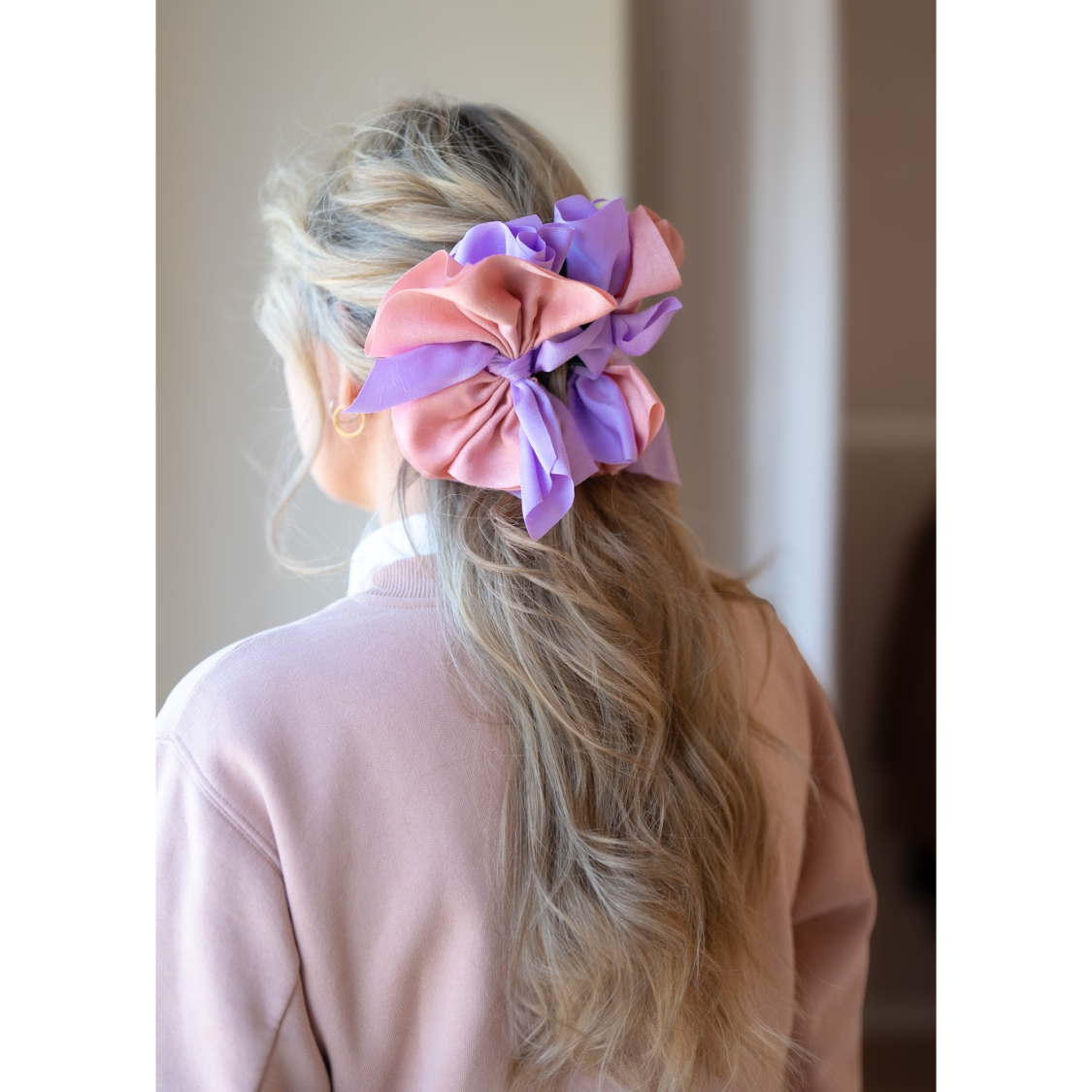 Elka hårklemme i pudder og lilla fra LÉ MOSCH, fyldig hårklemme, hårklemme med sløjfer,