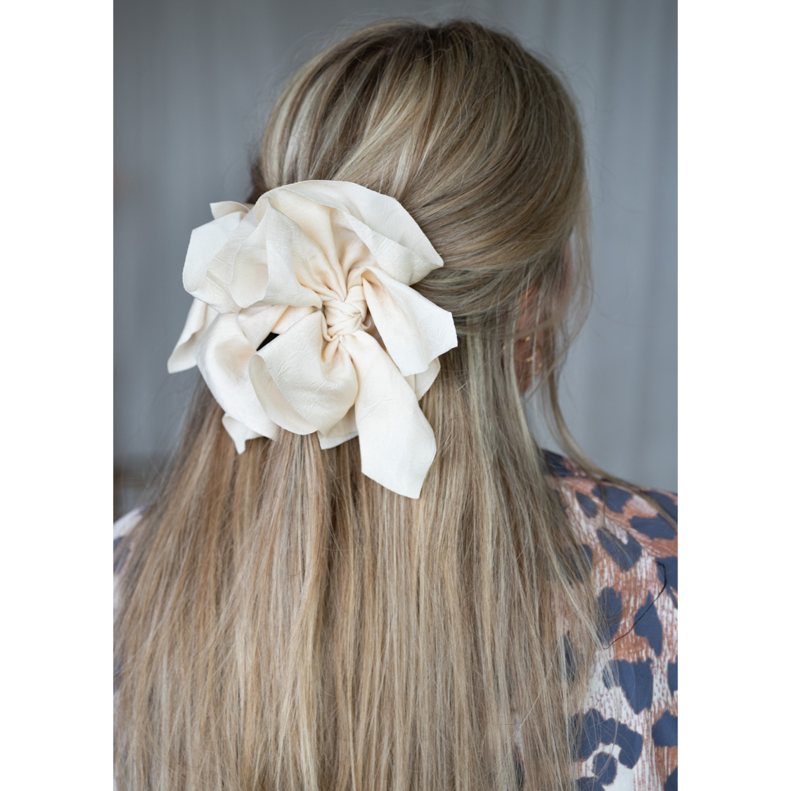 Elka hårklemme i creme med logo fra LÉ MOSCH, fyldig hårklemme, hårklemme med sløjfer og logo,