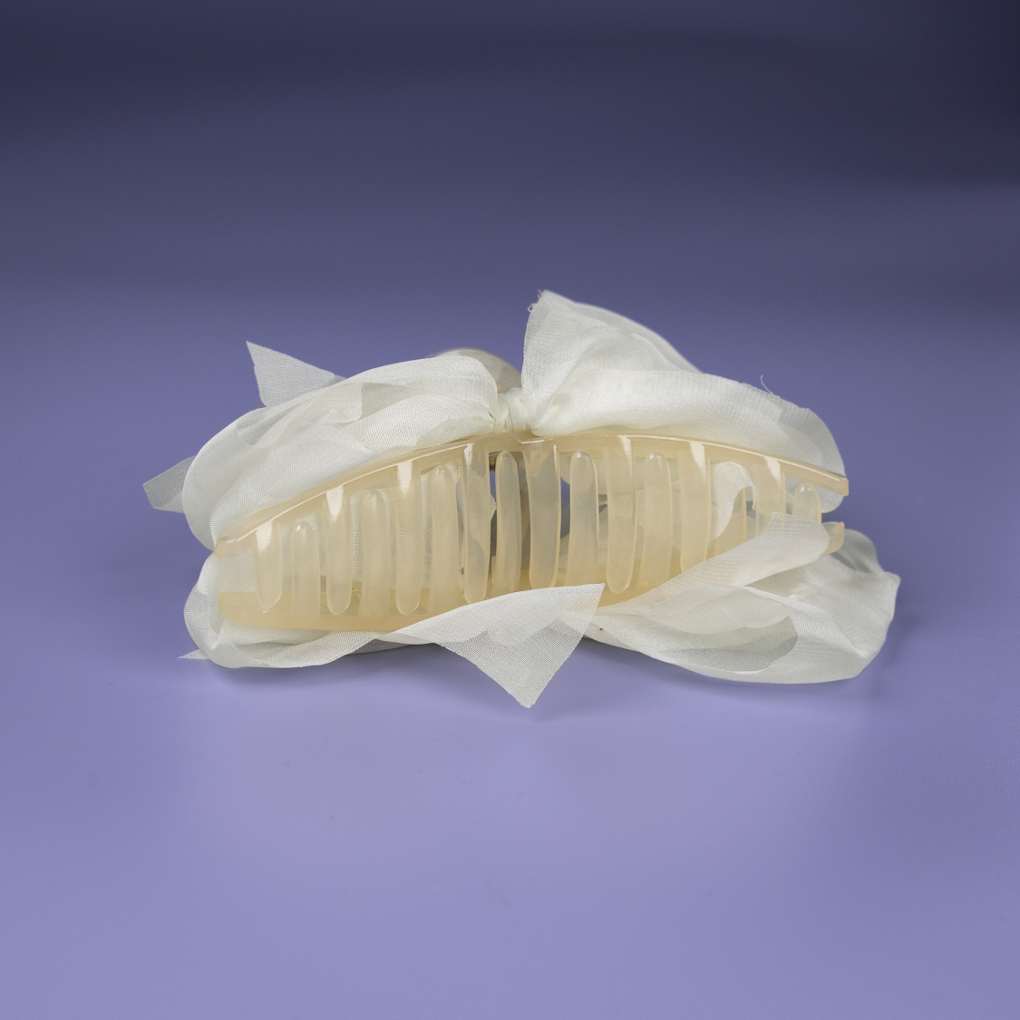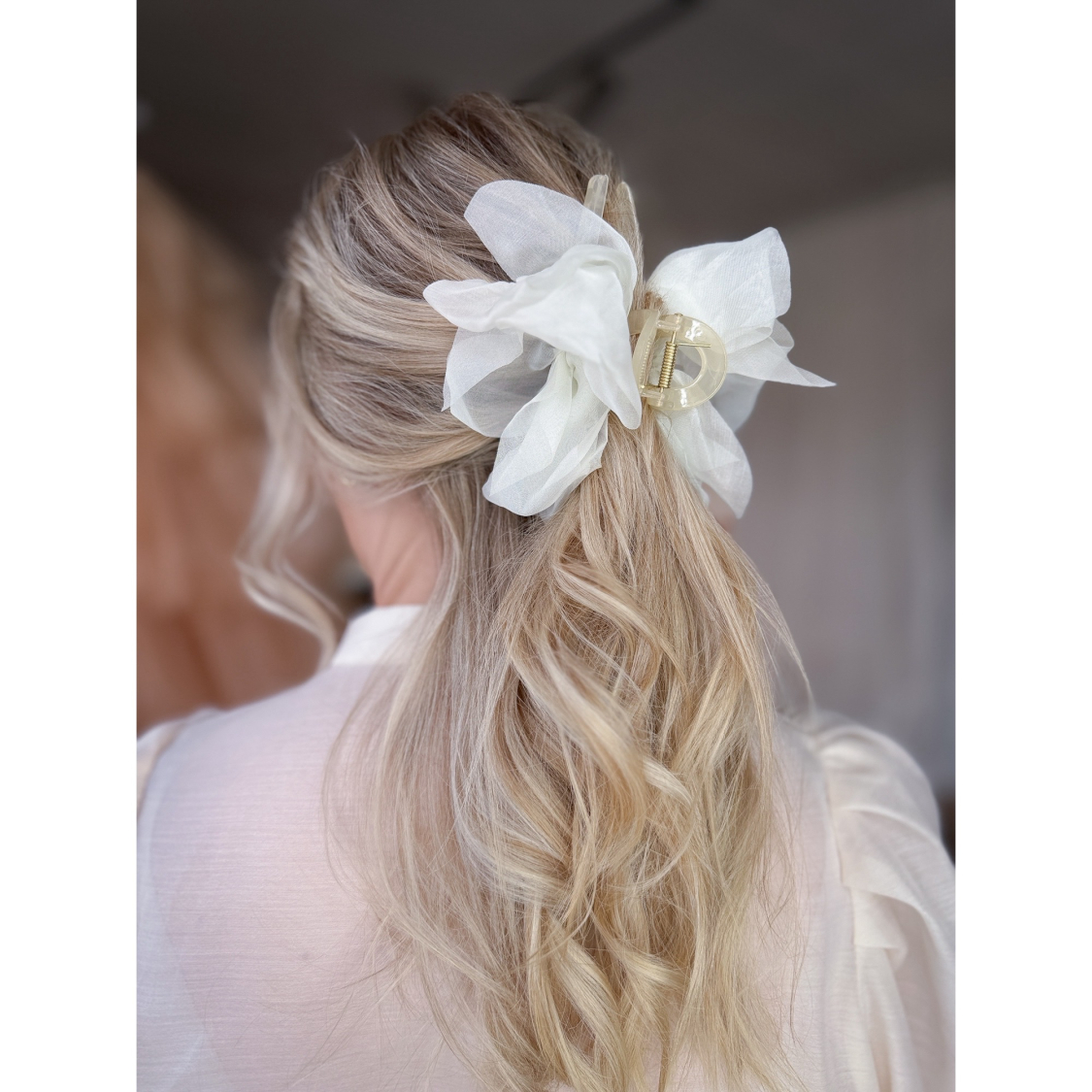 Hårklemmen måler 13 cm og har en super fin organza sløjfe på.