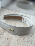 Flax flad hårbøjle med lysegråt læder fra LÉ MOSCH, cool og rå håndlavet hårbøjle, flad og preppy grå hårbøjle,