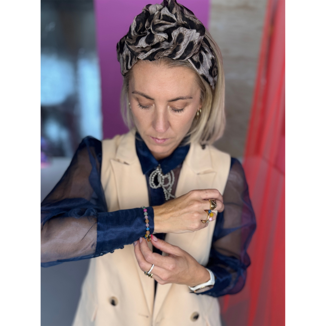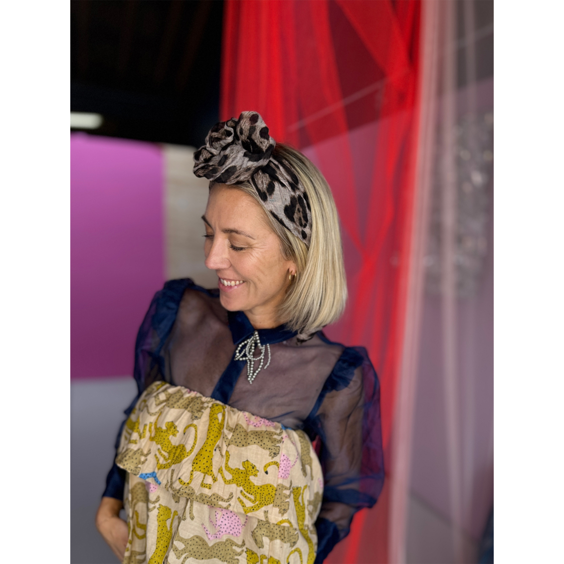 Lullie hårbøjle med lys leo tørklæde fra le mosch