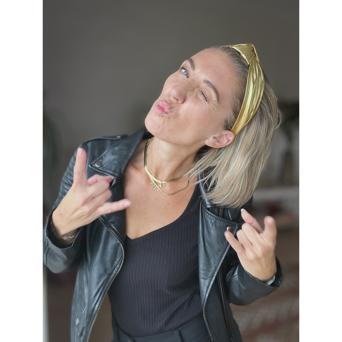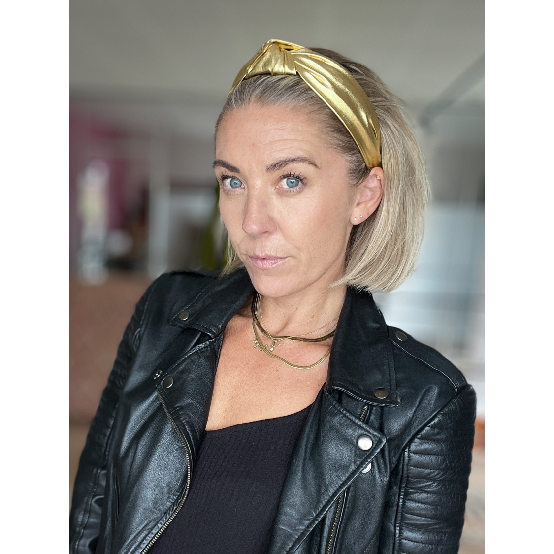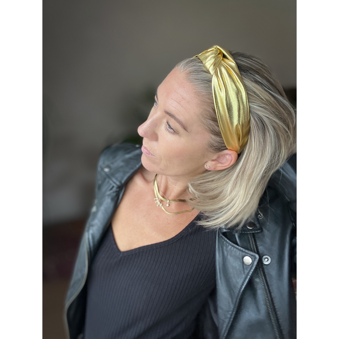 Hårbøjle med den klassiske knude, i et cool gyldent look.