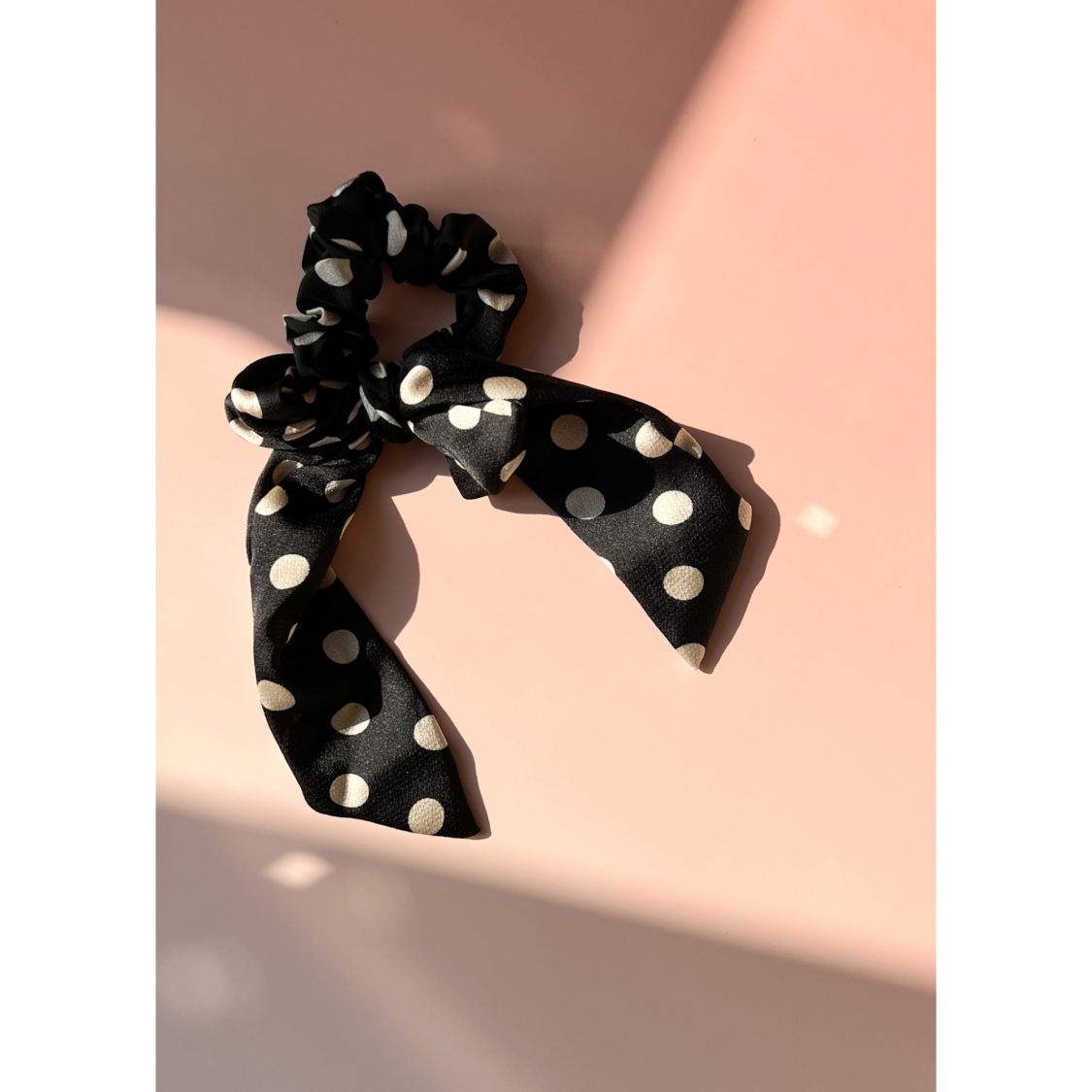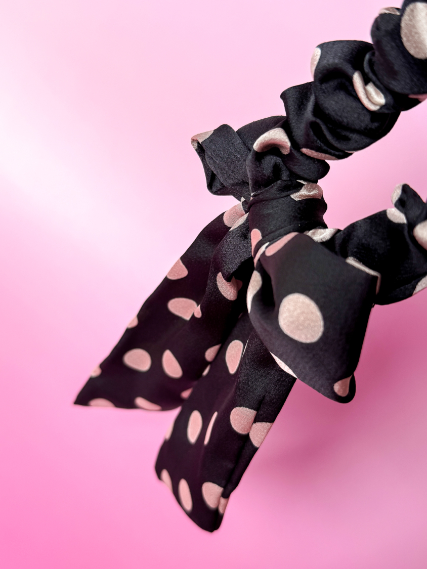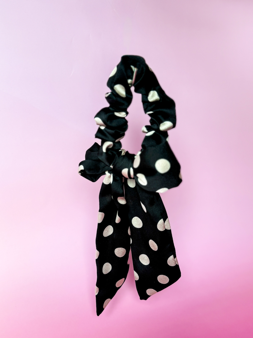 Mikka sløjfe scrunchie i sort med prikker