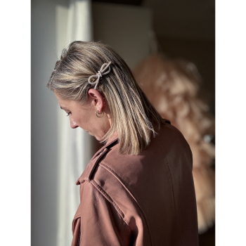 Brug Dancer sløjfe hårspænde til både hverdag og fest. Du får et mere pyntet look med de smukke perler og similisten, som løfter dit look. Du kan bruge spændet til alt muligt. Både din fine kjole, en dejlig strik, eller en blazer.