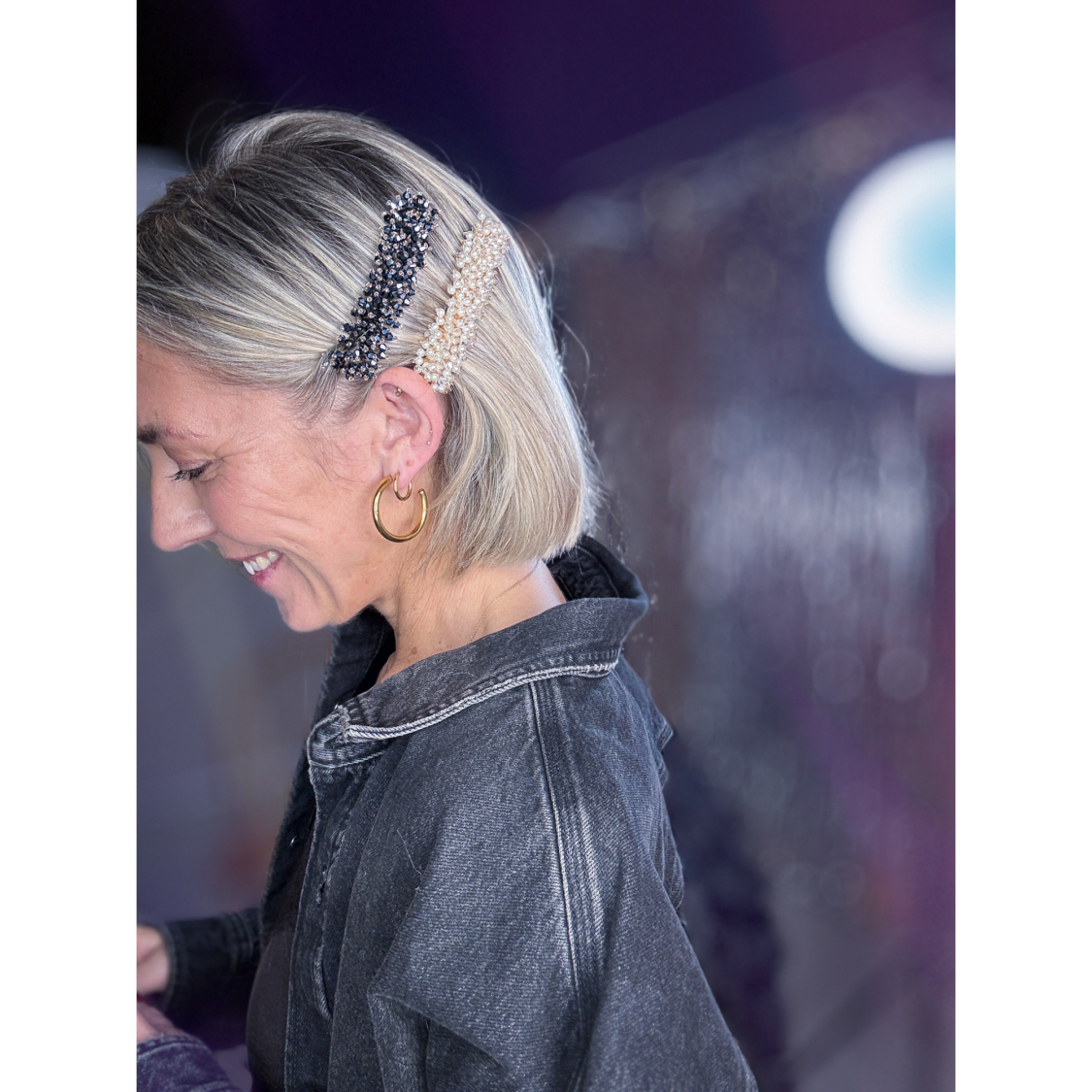 Ilse Hårspænde med grå sten fra LÉ MOSCH, fint og enkelt hårspænde, hårspænde med skinnende grå sten,