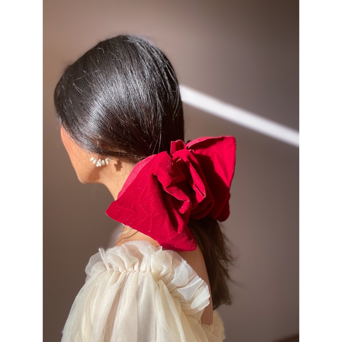 Juliet sløjfe hårspænde i mørk rød velour