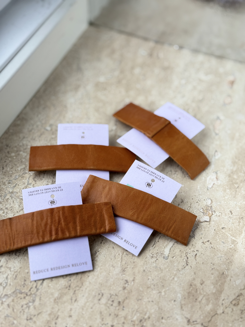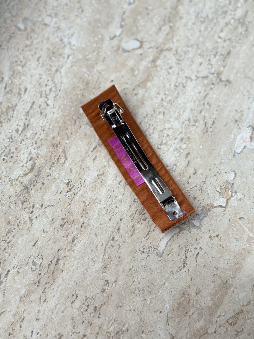 Vera Hårspænde med cognacfarvet læder fra LÉ MOSCH, lækkert unikt hårspænde, hårspænde med et sejt upoleret look,