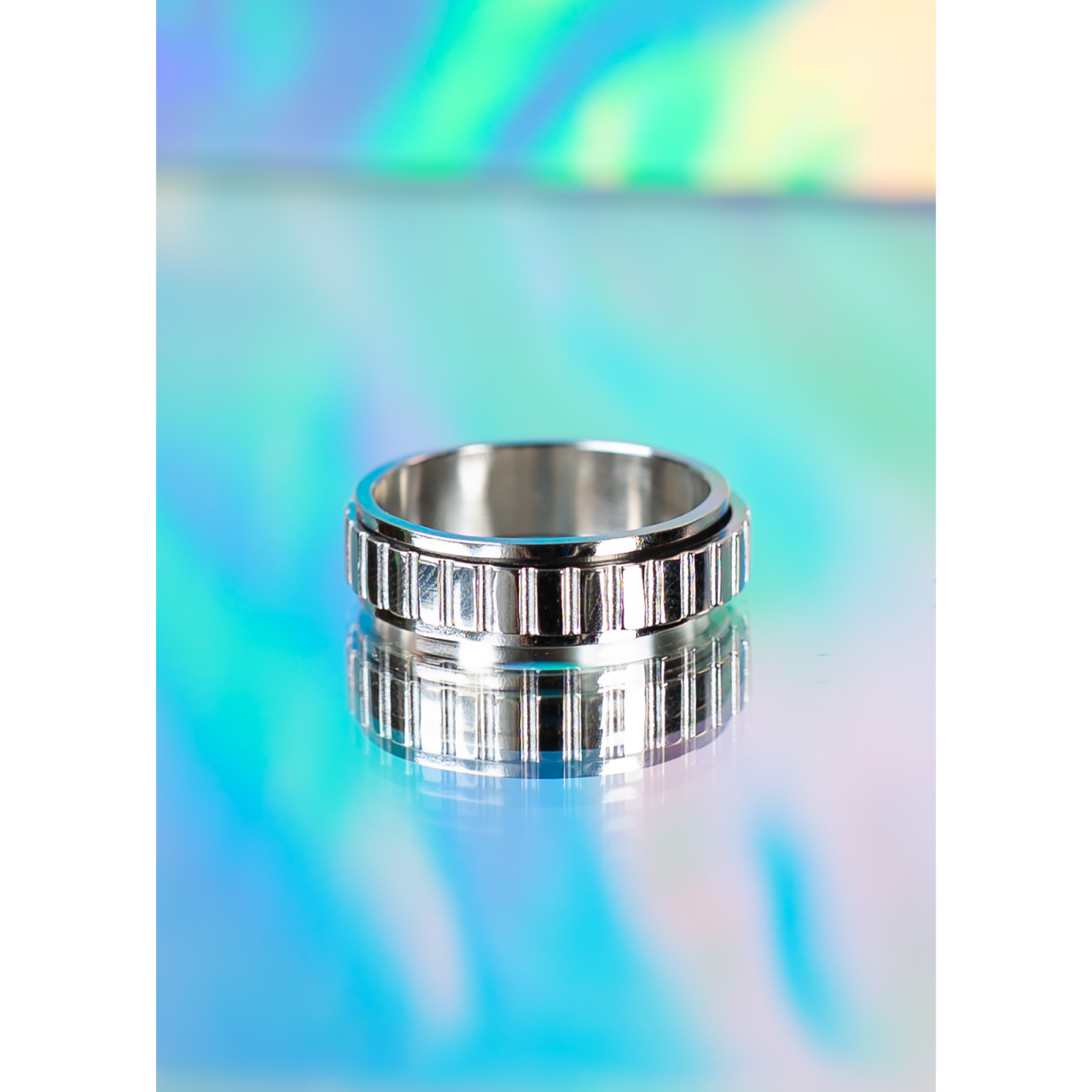 Super fin og enkel anti-stress fingerring i stål – perfekt til uro i kroppen og mental ro. Den midterste del af ringen kan dreje rundt.