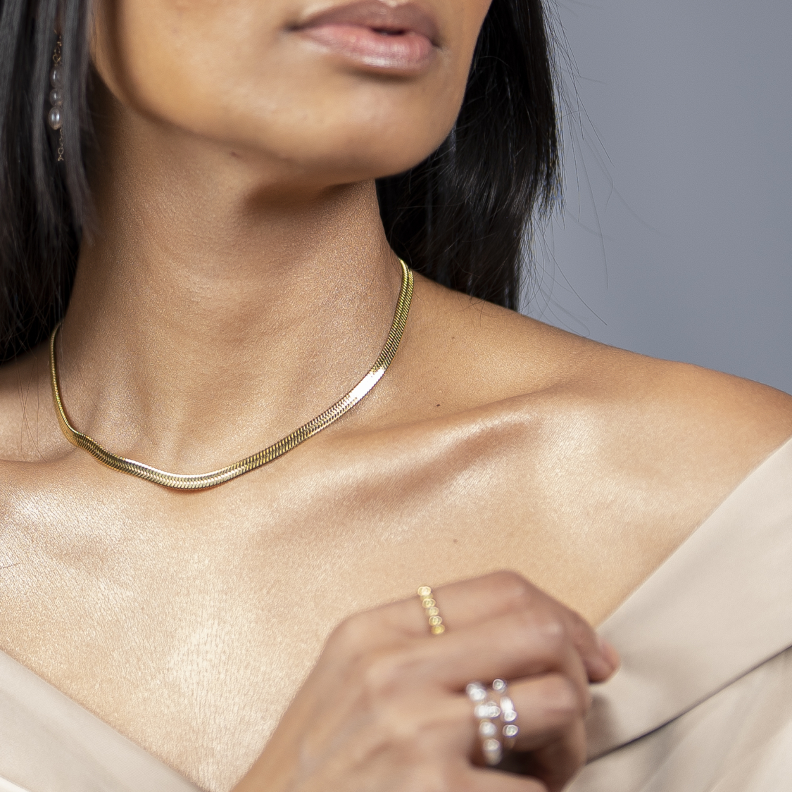 Forsiden / Smykker / ARMBÅND / Luna halskæde snake - forgyldt 40-45 cm - bred - 5 mm