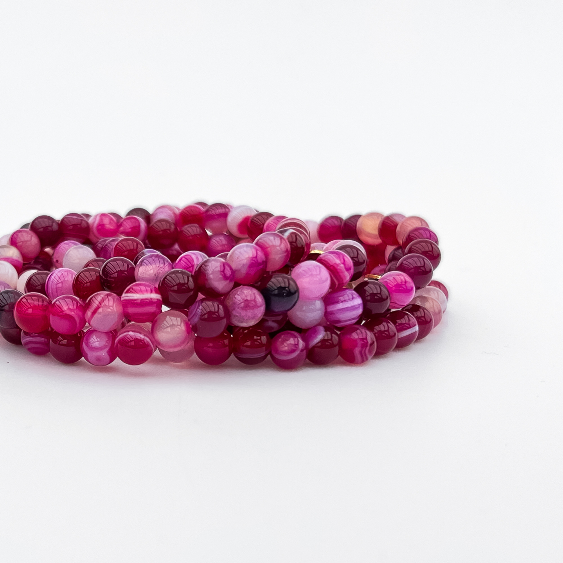 Forsiden / Smykker / ARMBÅND / Haniel armbånd Pink agat natursten 6mm