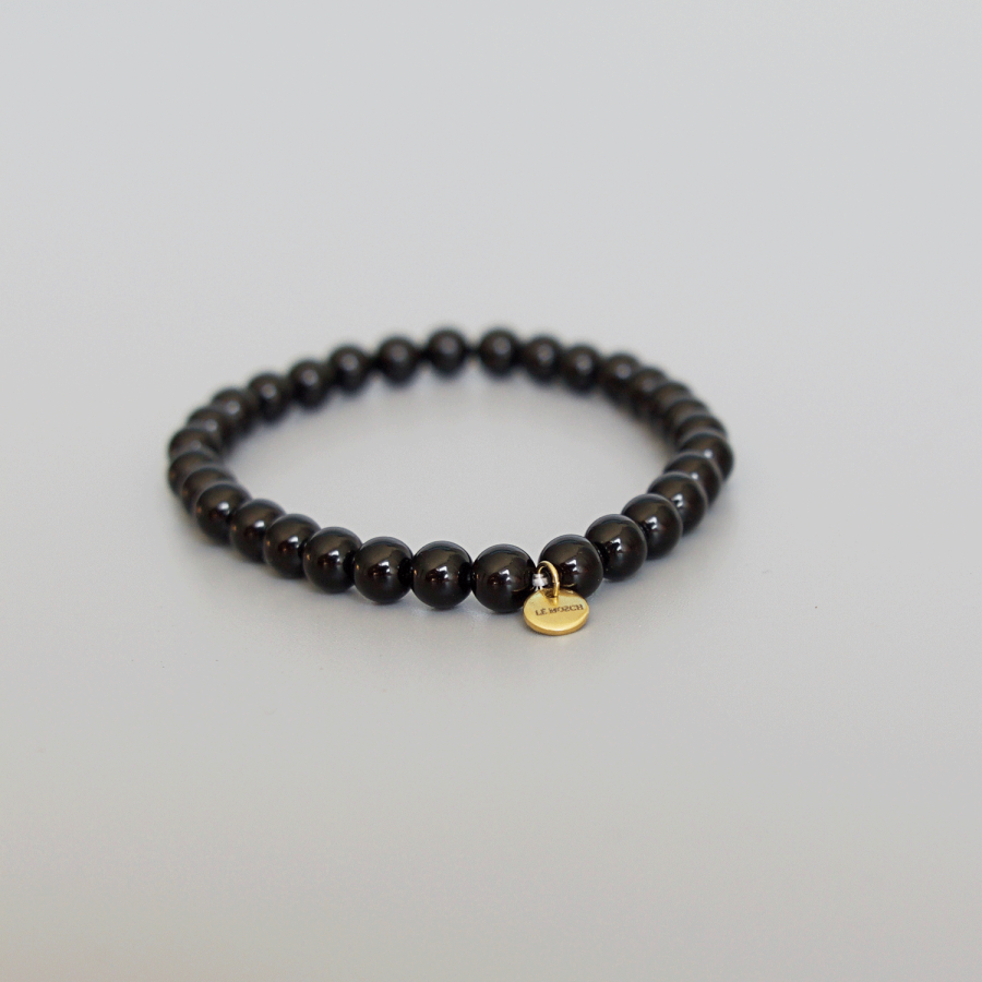 Haniel - armbånd Sort Karneol natursten 6mm fra le mosch