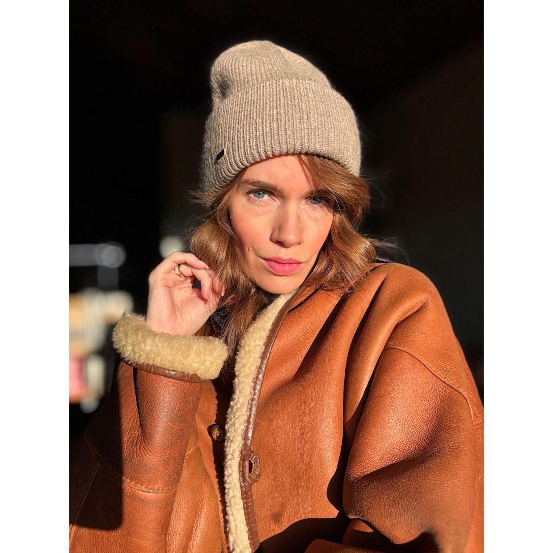 Rickie Beanie i beige fra LÉ MOSCH, blød og varm strikhue, fin beige vinterhue,