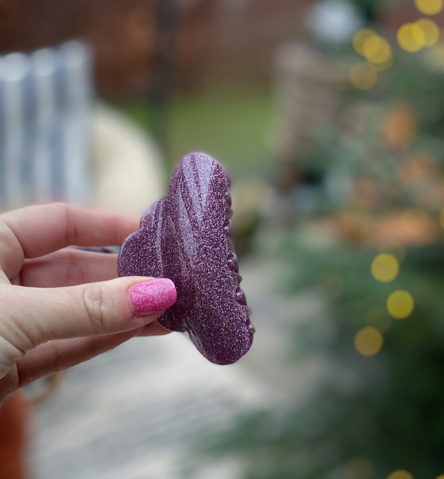 Heaven hårklemme i Glitter lilla er i mange smukke farver og modeller, så du kan finde lige præcis den spænde som du synes er flottest. Og ikke mindst passer til det sæt tøj du har på.