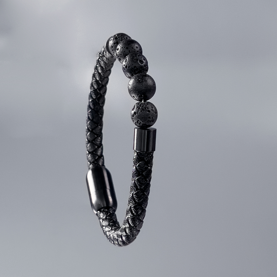Johnson herrearmbånd - lavasten og sort læder