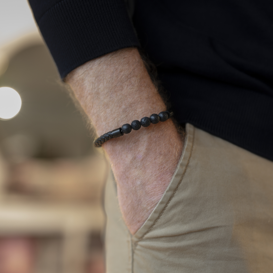 Forsiden / Smykker / Armbånd / Johnson herrearmbånd - lavasten og sort læder
