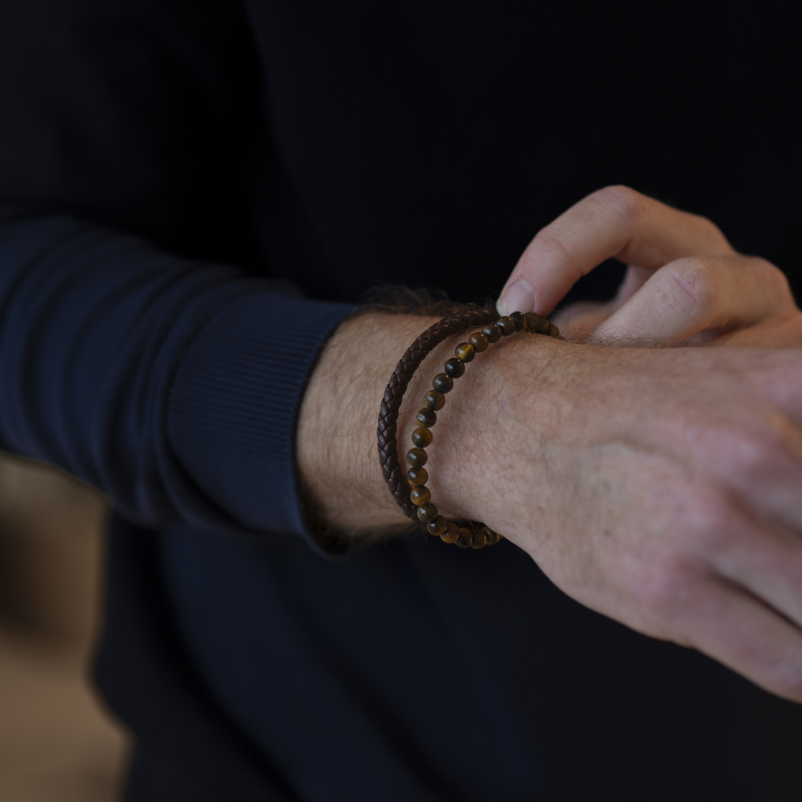 Forsiden / Smykker / Armbånd / Tyson herrearmbånd - brunt læder og tigerøje