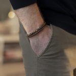 Herrearmbånd med brunt læder og tigerøje - 20,5 cm.