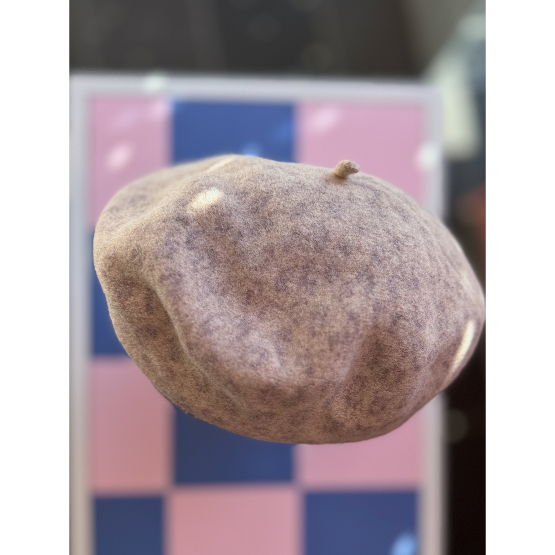 Baret med leoprint i 100% uld.