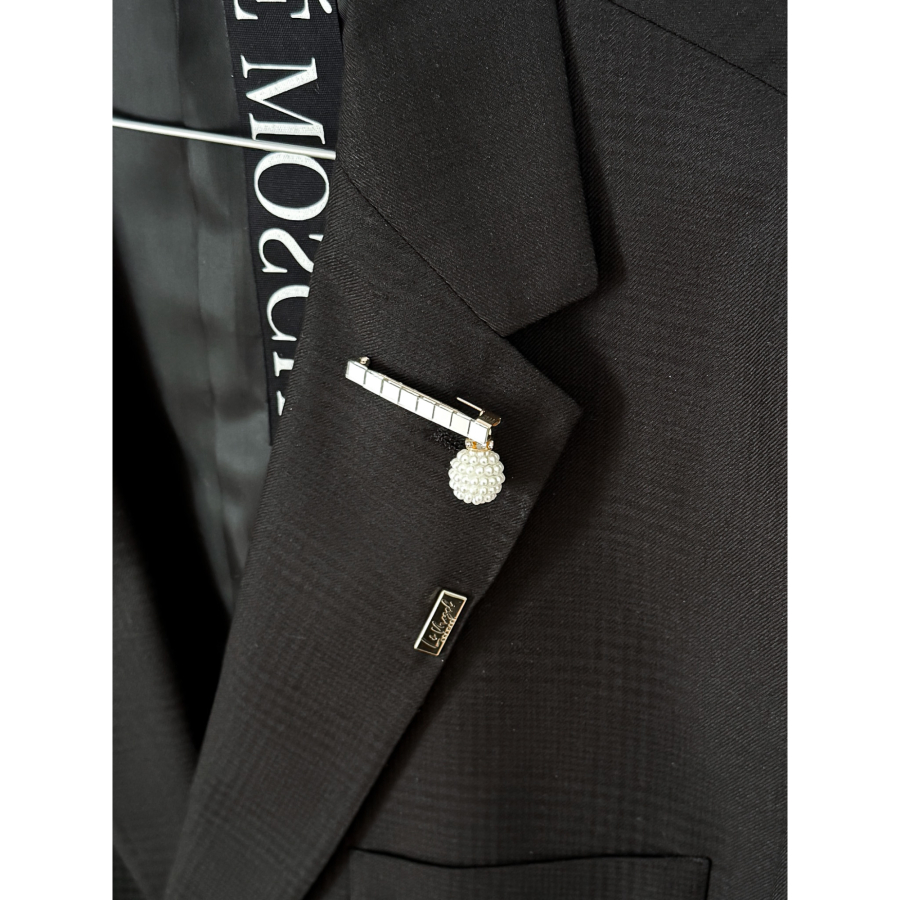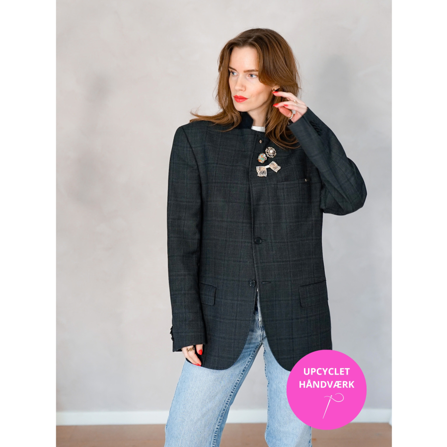 Vintage Vibes sort blazer med broche – No 155 fra LÉ MOSCH, skøn sort blazer med feminin broche,  unik og enkel ternet sort oversize blazer,