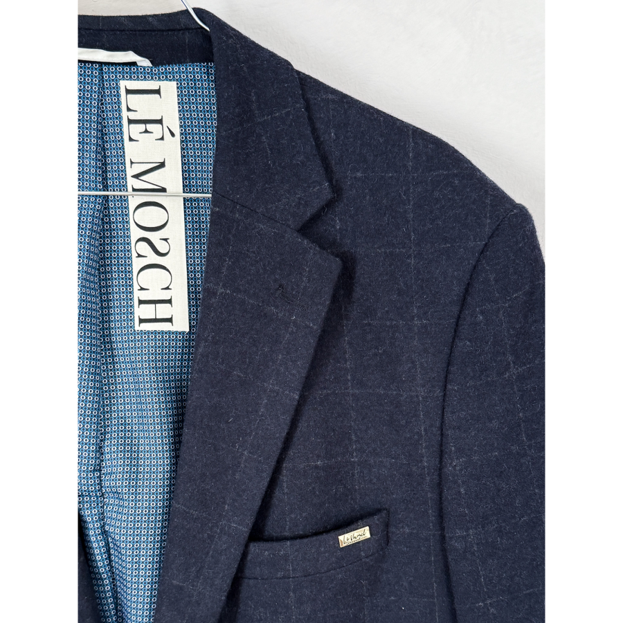 Vintage Vibes blå ternet blazer – No 154 fra LÉ MOSCH, skøn og unik blå ternet blazer, oversize og enkel blazer med mørke tern,