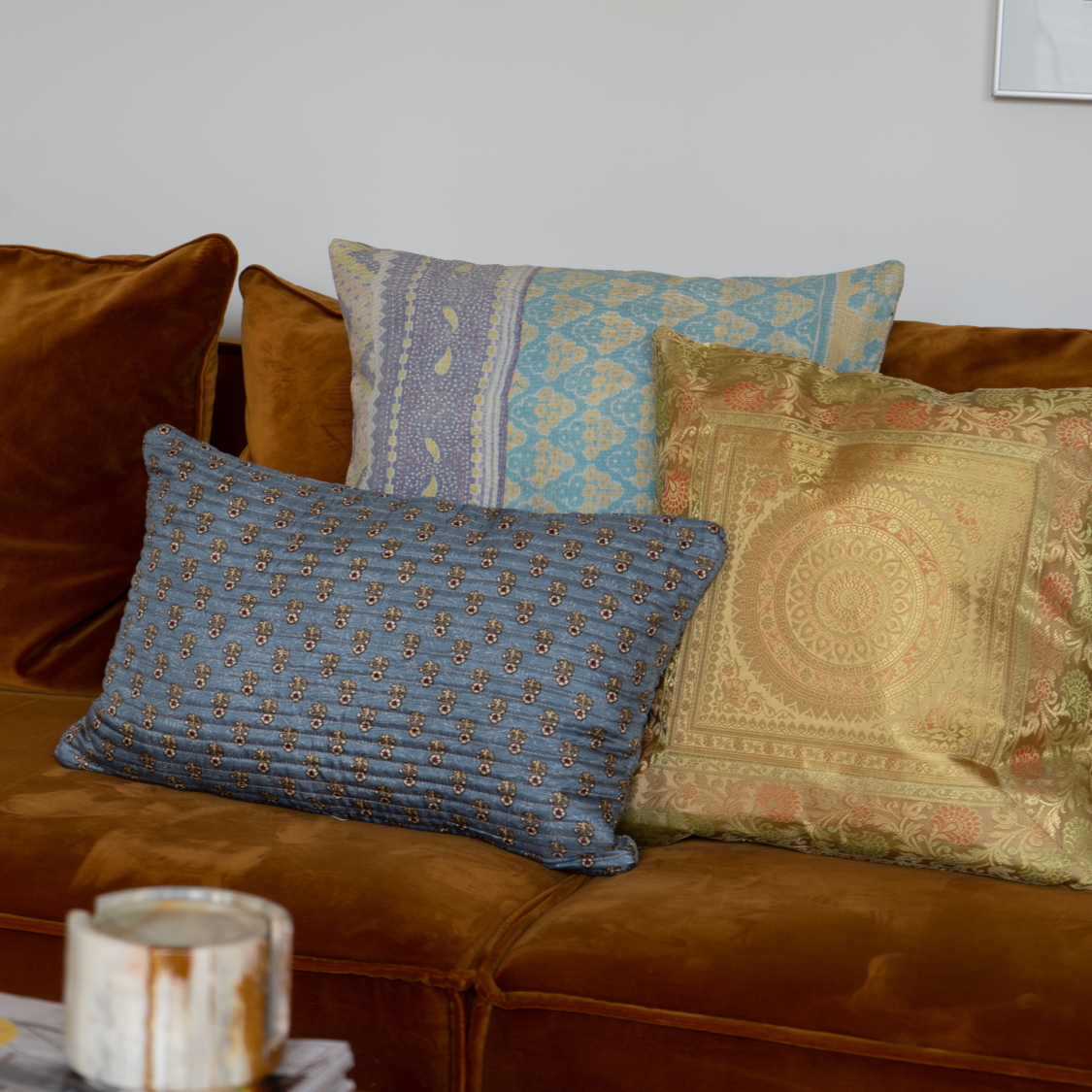 Forsiden / LÉ MOSCH denmark / Quiltet Indisk Pudebetræk no 107 - 30x50 cm
