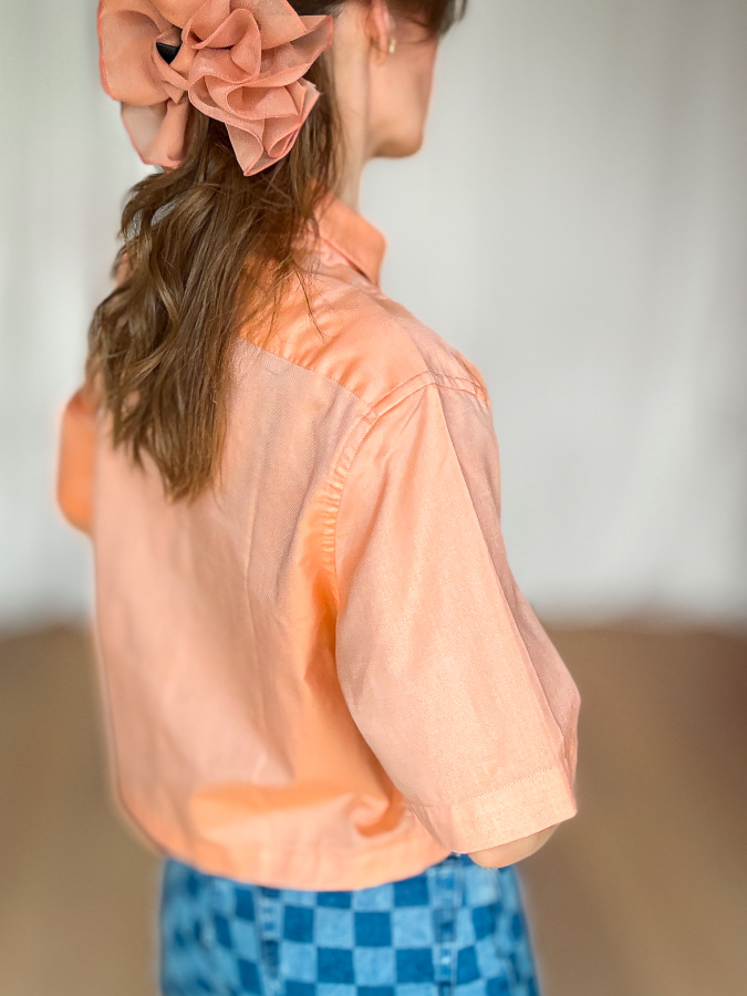 Vintage Vibes kortærmet peach skjorte - no 180 fra LÉ MOSCH, Smuk og anderledes skjorte, ferskenfarvet kort skjorte med korte ærmer,
